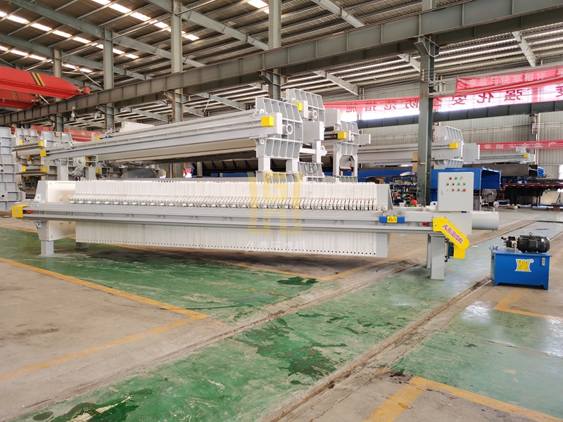 全自動(dòng)板框式壓濾機(jī) 為自動(dòng)壓緊,自動(dòng)卸料的全自動(dòng)控制設(shè)備,的特點(diǎn)就是卸料時(shí)間短,改變了以往的自動(dòng)拉板卸料的逐個(gè)拉開(kāi)的卸料方式,以一個(gè)長(zhǎng)油缸的長(zhǎng)行程形成較大的卸料區(qū)間,每塊濾板通過(guò)不銹鋼鏈條連接為體,通過(guò)油缸的壓緊和退回來(lái)實(shí)現(xiàn)每塊濾板的一次拉開(kāi),促使濾板中壓干的泥餅自動(dòng)脫落,此種卸料方式大大減少了壓濾機(jī)的卸料時(shí)間,提高了壓濾機(jī)的利用率次拉開(kāi)壓濾機(jī)操作簡(jiǎn)單,節(jié)省人力,適用于各行業(yè)的中小型公司使用,很多時(shí)候客戶所選的設(shè)備不是很大,但是又不想使用傳統(tǒng)的千斤頂設(shè)備,從而提高工作效率,長(zhǎng)久以來(lái),一次拉開(kāi)壓濾機(jī)就慢慢的占據(jù)了市場(chǎng)的需求性和穩(wěn)定性。